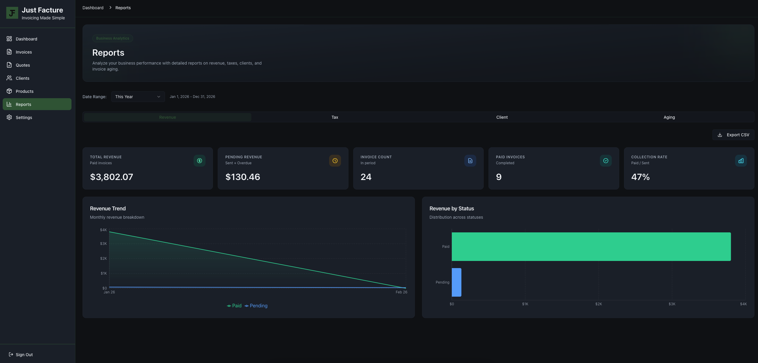 See what is paid, pending, or overdue and keep your follow-ups organized in one place.